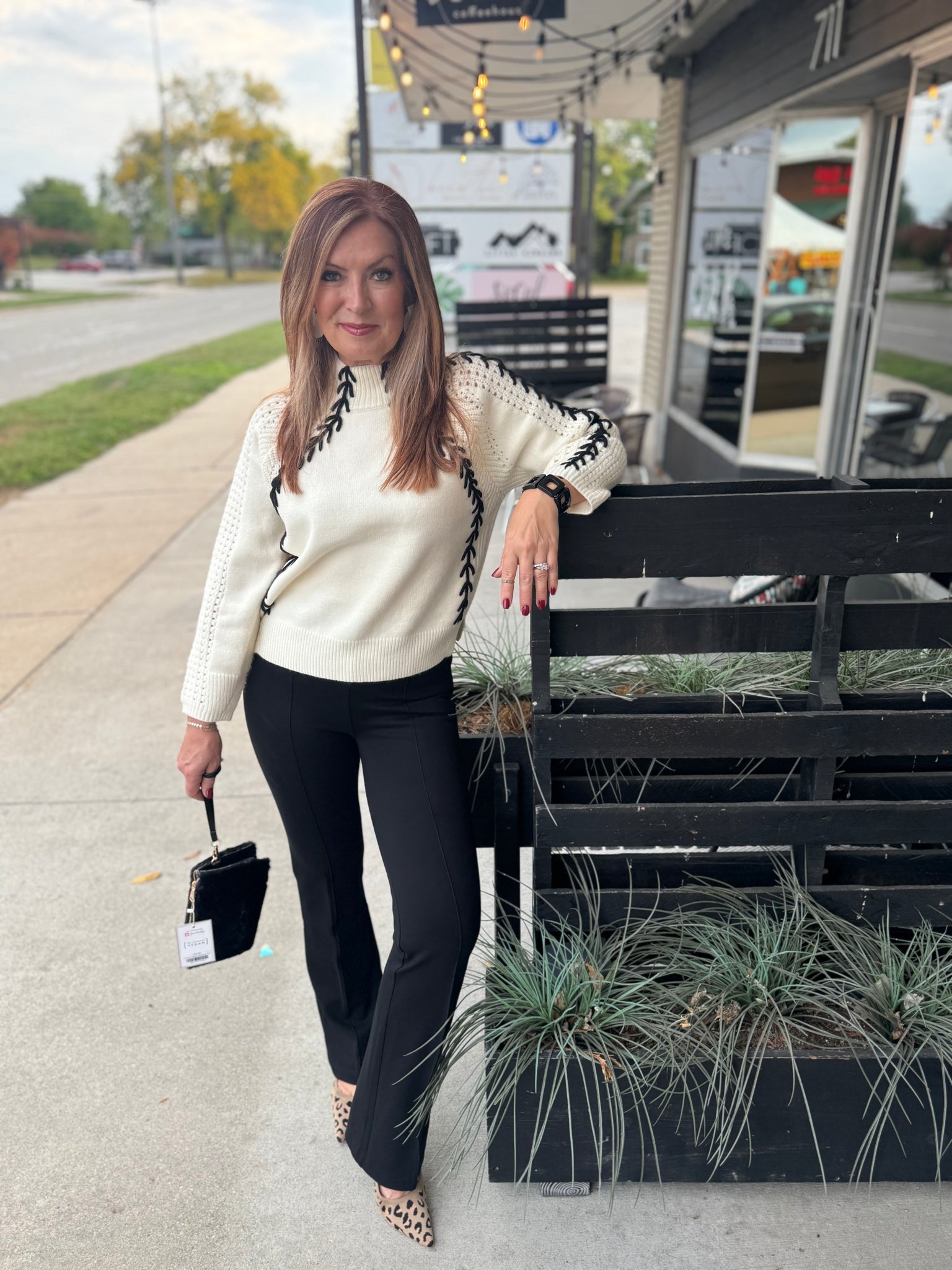 Sweet Stitches Ivory & Black Sweater