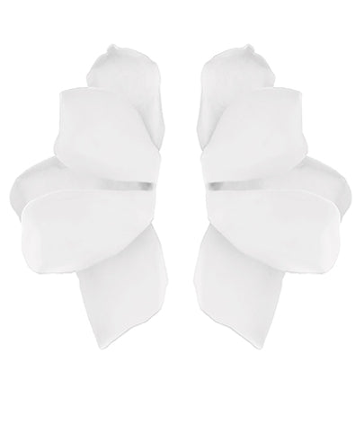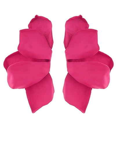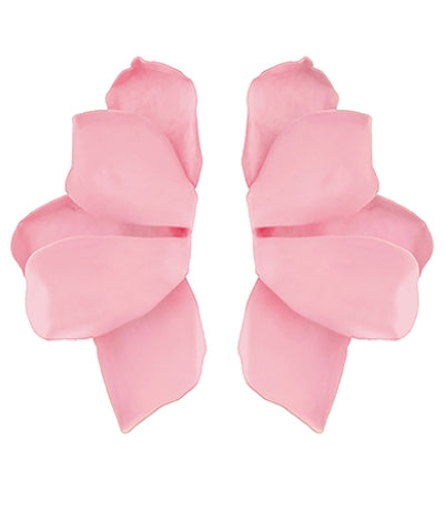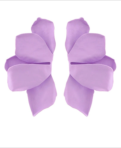 Color-coated half-flower earrings crafted from metal with a post backing, measuring 2 1/2 inches long.