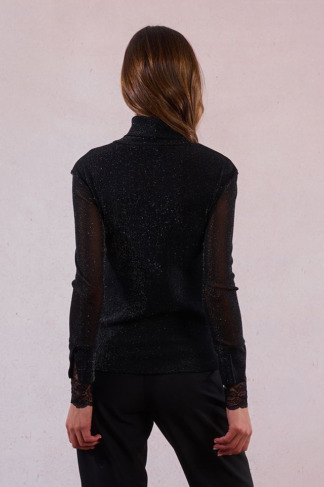 This elegant black long-sleeve top features delicate silver sparkle details woven throughout, adding a subtle shimmer to your outfit. The lacey hem provides a feminine touch, while the mock neck offers a modern, polished look. Perfect for layering, the Laced In Love Black Undersweater effortlessly enhances any wardrobe with both style and versatility.