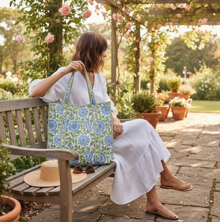 Perfect for everyday use - Plenty of space to fit everything - Bag also contains an inside square pocket. - Size: 18 in X 18 in X 5 in - Fabric type: 100% Cotton