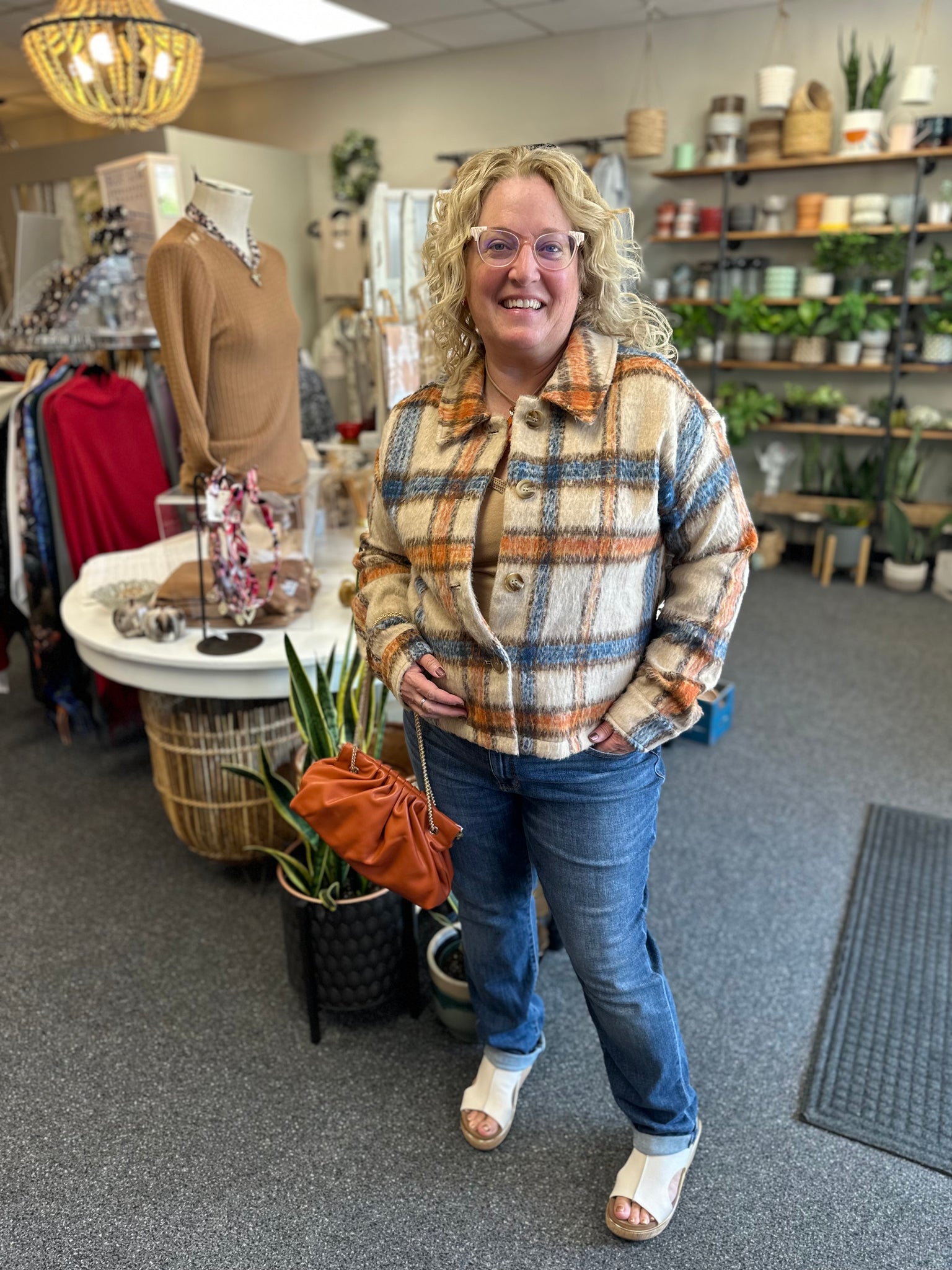 Stay cozy and stylish with the Fresh From The Patch Plaid Shacket! This playful button-down jacket features a classic collar and side slits for easy movement. Perfect for layering, its vibrant plaid print adds a fun twist to your casual look. Whether you're heading out for a stroll or meeting friends, this shacket brings comfort and charm in one cozy package.
