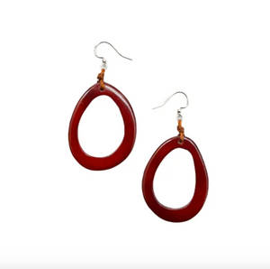 Naturally dangle earrings that pair with a matching necklace. Lightweight. Made from Tagua with an open center. Earwire lead free, nickel free, and hypoallergenic. Organic Vegetable dyes. Handmade in Ecuador. Due to the nature and size of the tagua nuts, all sizes are approximate…not exact.
